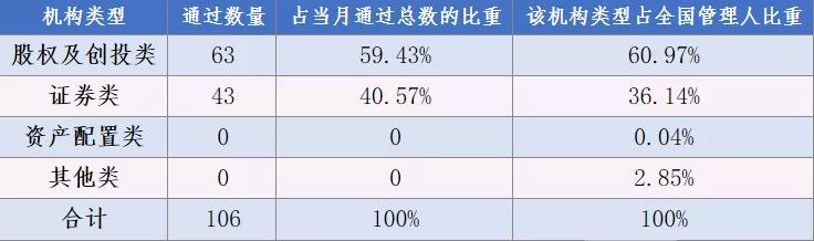 上圖為2021年10月通過的各類型私募基金管理人數量及占比詳情。對比2021年9月份(通過股權及創投類108家,證券類86家),新登記通過的股權和創投類私募基金管理人和證券類私募基金管理人有所下降。