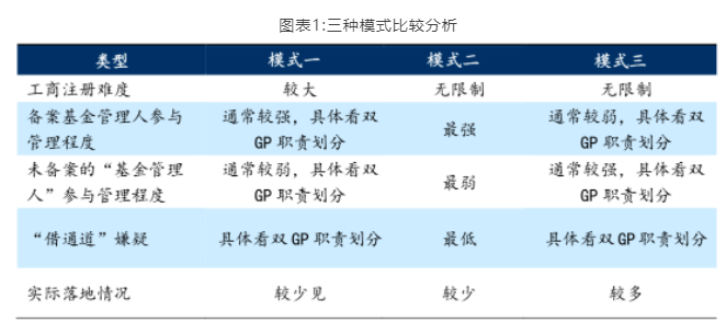 二是,對于“雙GP”模式一、“雙GP”模式二影響較小,因為上述兩張模式管理人均擔任了執(zhí)行事務合伙人;